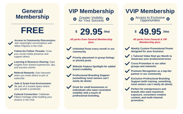 We welcome everyone with free membership, giving you access to meaningful discussions, resources, and connections. But if you’re ready to take your visibility, credibility, and business growth to the next level, our VIP and Exclusive VVIP plans are designed for you.